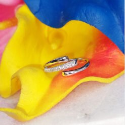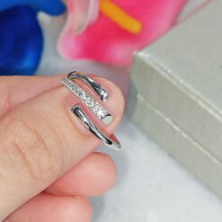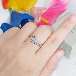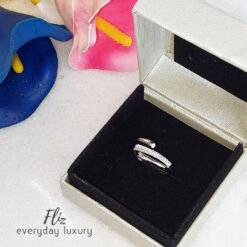 Delicate and refined, this ring lifts any outfit, from a relaxed daytime look to an elegant evening ensemble. With a trendy stacked look, the unique design includes a rigid chain and rhodium-plated metal studs, highlighted by clear crystal pavé.
