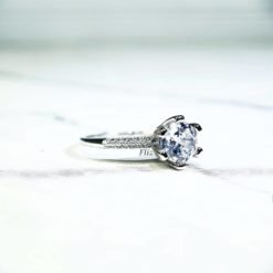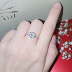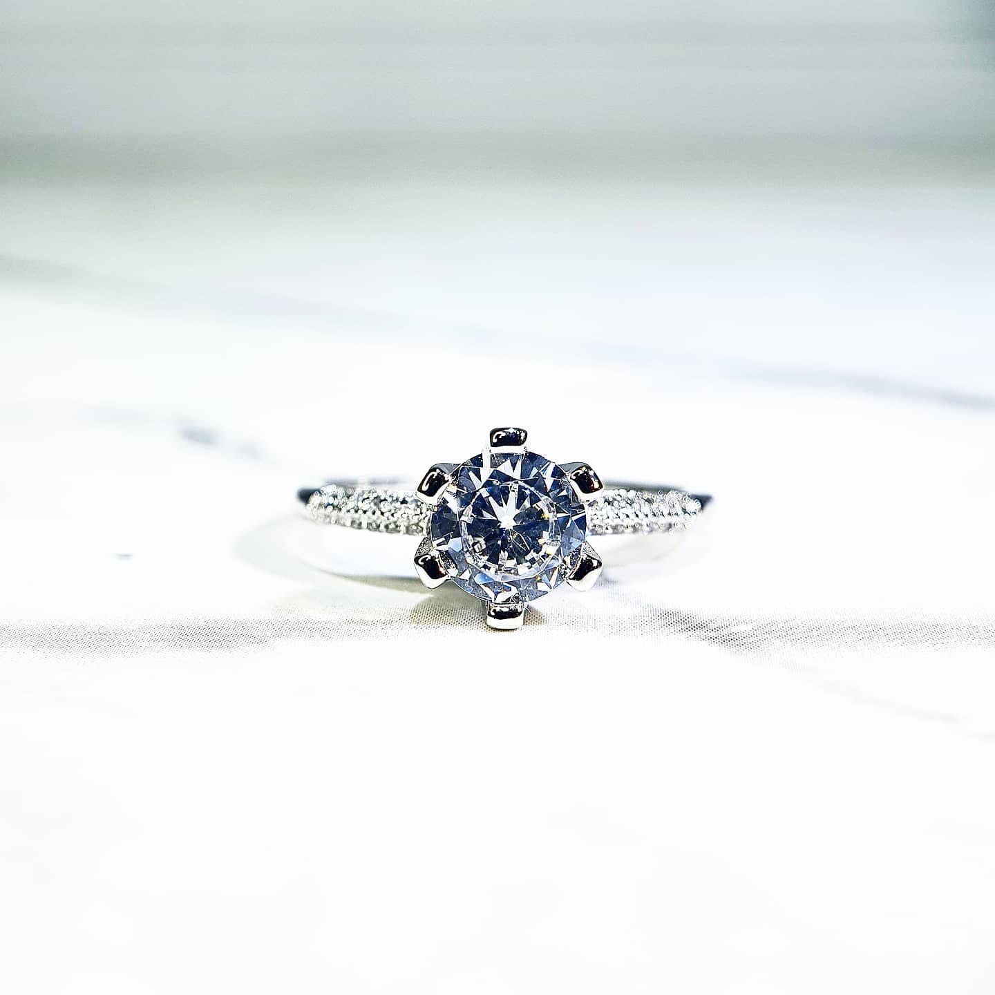 A timeless Latisha Ring. This stunning ring features a round element in the center with sparkling chatons on either side, embellishing the front half of the ring. The perfect jewelry piece for day or evening outfits!