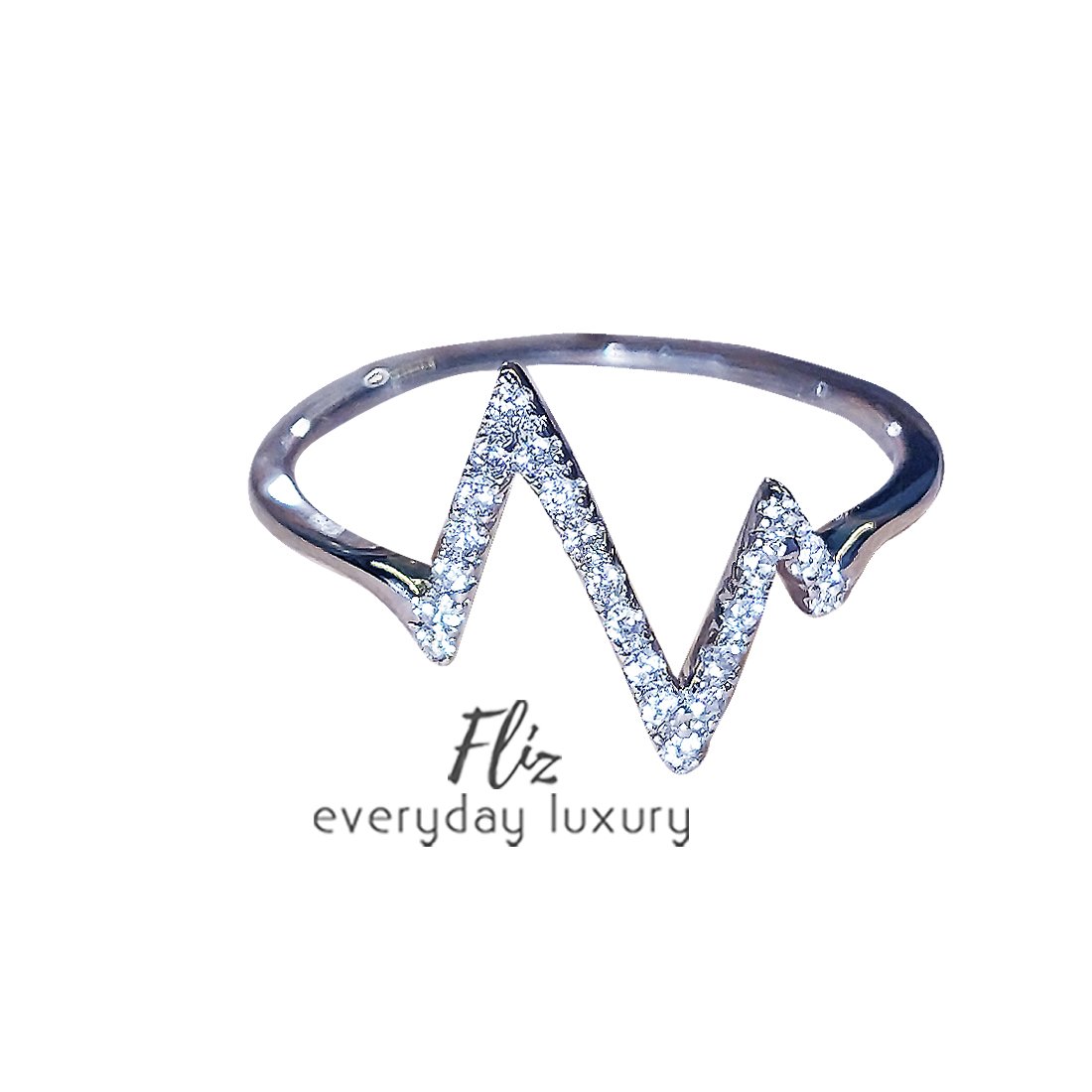 Luca Ring. This stunning silver925 ring features a Zic-zac element in the center with sparkling crystal on either side, embellishing the front half of the ring. The perfect jewelry piece for day or evening outfits!